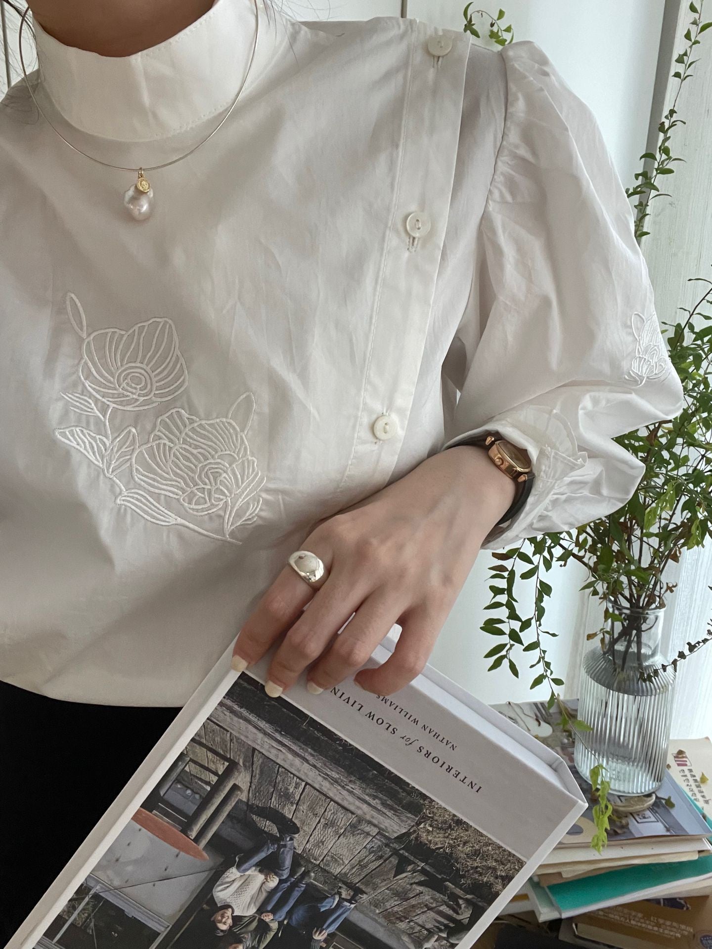 This slender, rigid choker in sterling silver features a vintage-style copper coin paired with an organic baroque pearl — a bold juxtaposition of structure and softness.