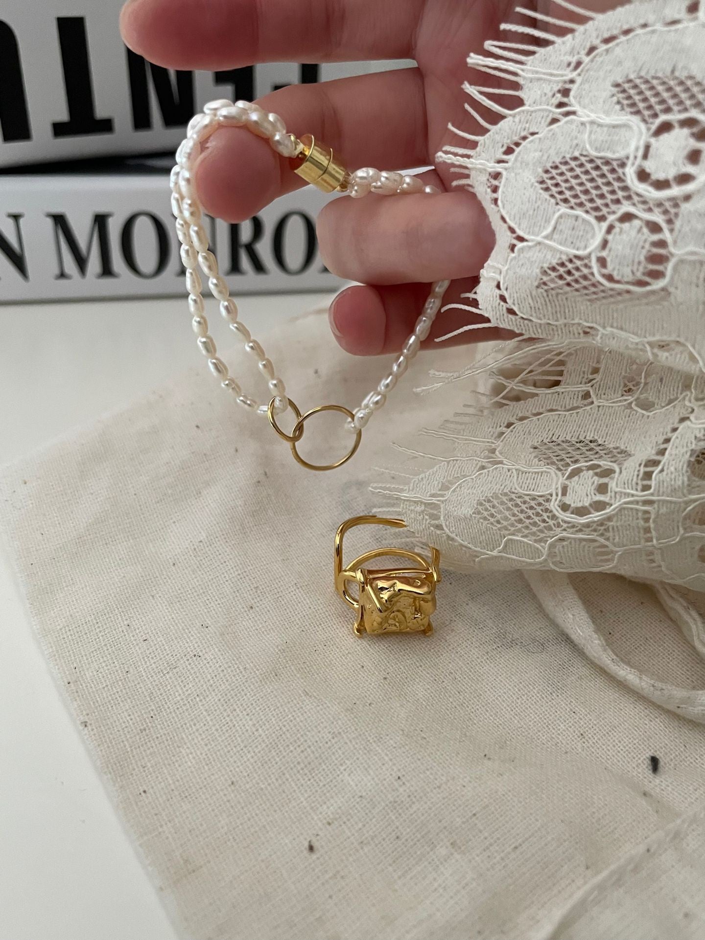 This delicate bracelet features two parallel strands of luminous freshwater pearls, joined at both ends to create a structured yet fluid silhouette. A sleek magnetic clasp ensures effortless wear, while 18K gold-plated sterling silver adds warmth and refined shine.