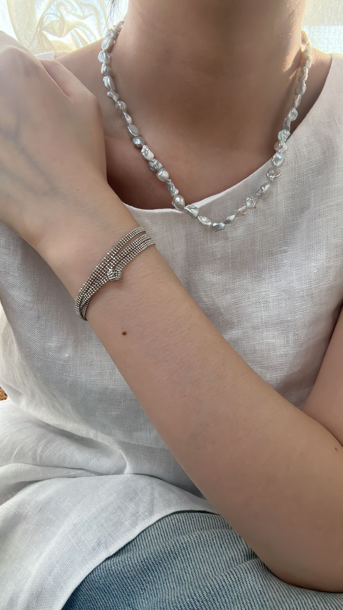 Designed to be worn as a short necklace or double-wrapped bracelet, it offers versatility for moments that call for understated beauty.