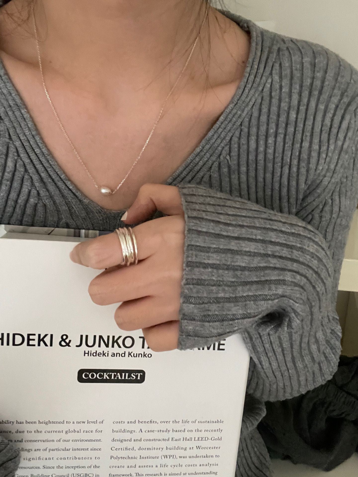 A single lustrous rice-shaped pearl rests gently on a minimalist sterling silver chain — a quiet blend of purity and elegance.